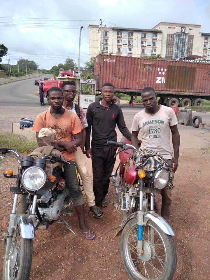 Abodurin said, "further interrogation showed that the youths who are from Niger State with their motorcycles. They claimed to have boarded a truck conveying foodstuff from Kotangora to Lagos, alighted at Ogere and continued the journey with their motorbikes to Abeokuta where they were arrested".